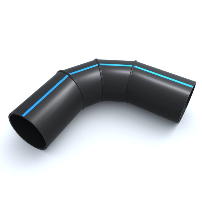 Отвод сварной двухсекционный ПНД 90º 500x300x518x250 мм SDR-26 позволяет изменить направление прокладываемого трубопровода под различными углами под задачу