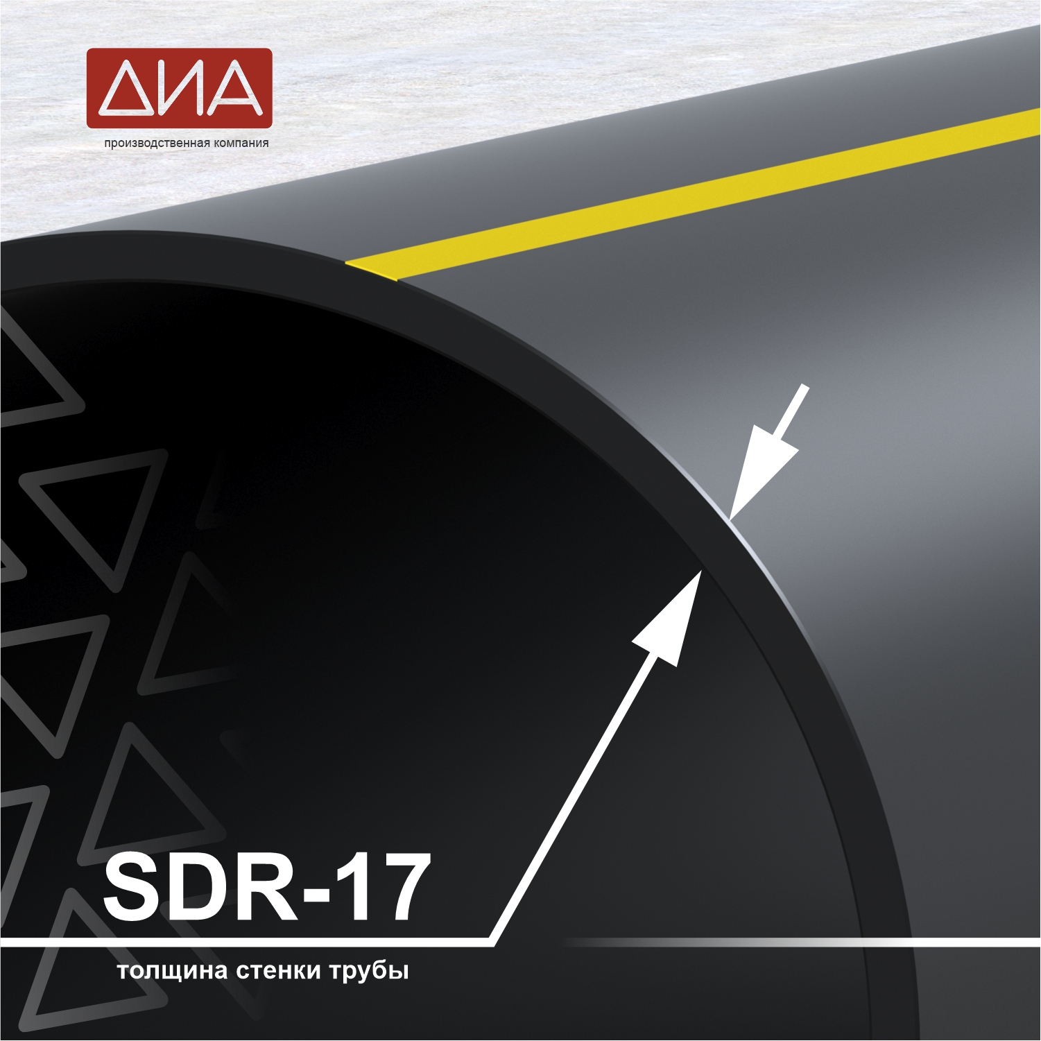 Труба ПНД ⌀180 мм, ПЭ-100, SDR-17 газовая с диаметром 180 мм и толщиной стенки 10,7 мм имеет номинальное (условное) давление 6 атм. и позволяют выполнять работы: Монтаж магистральных трубопроводов Строительство подземных газопроводов.