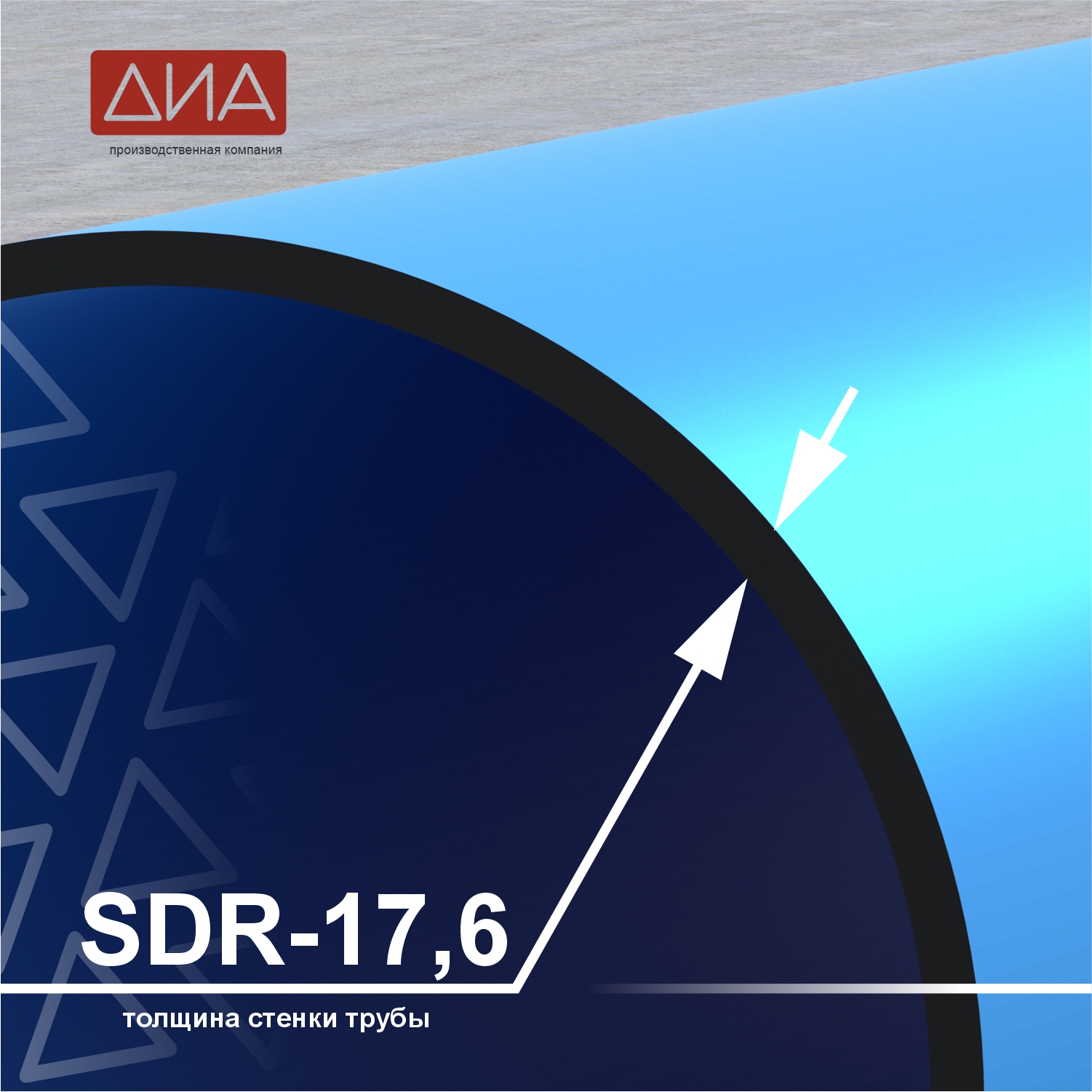 Технические условия» (с Поправкой, с Изменениями N 1, 2).соответствует классу ПЭ100-RC;ПЭ100. ПНД трубы для водоснабжения обладают долгим сроком службы, стойкостью к химическому воздействию и коррозии. Гарантия от производителя 2 года со дня изготовления. Низкая стоимость, быстрое производство и монтаж, отсутствие токсичных материалов в трубах делают их популярным строительным материалом в сфере водоснабжения. Труба ПНД ПраймЛэй SDR-17.6 с диаметром d-500 мм мм и толщиной стенки 28.3 мм имеет номинальное (условное) давление 9.5 атм.